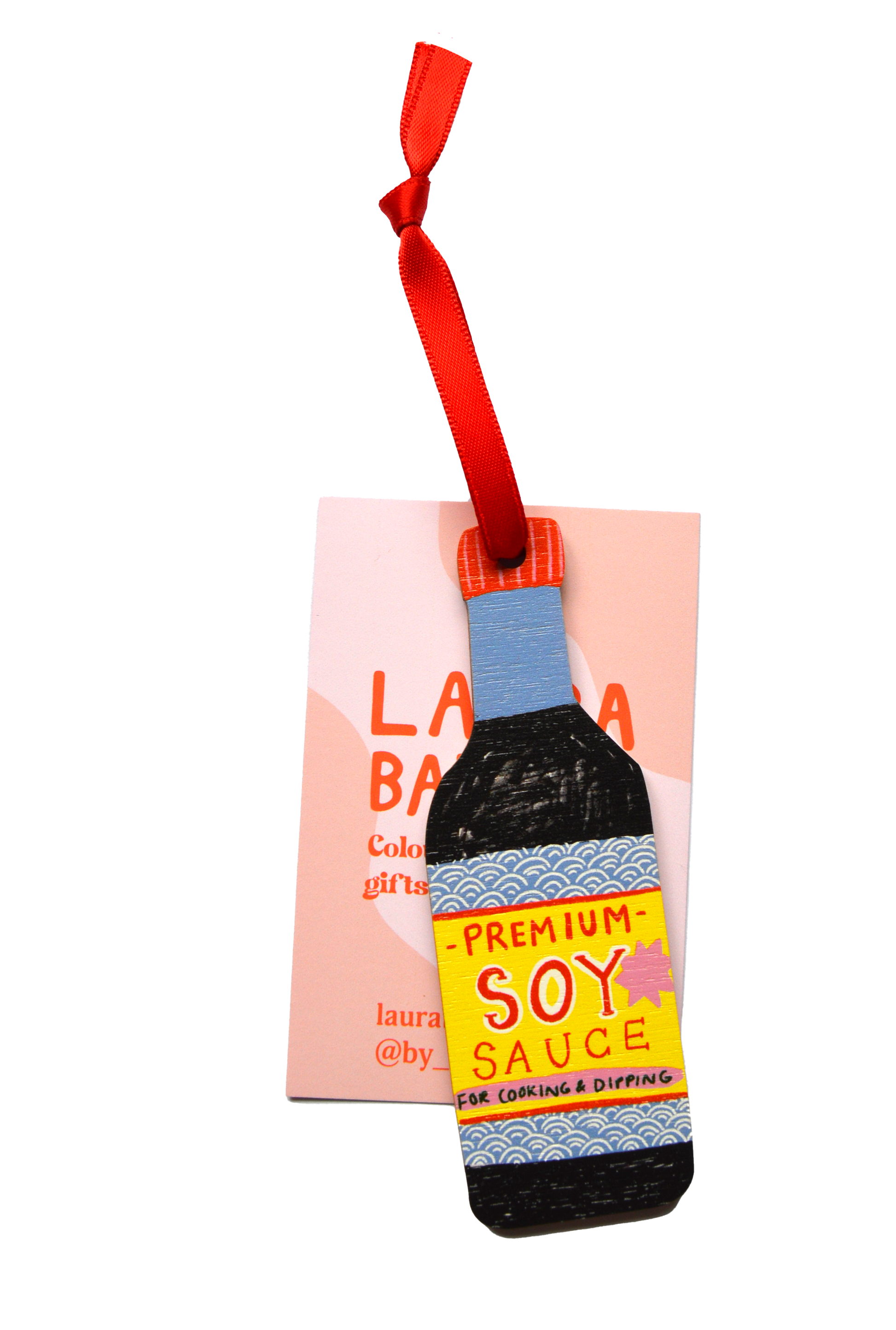 A quirky, illustrated tree decoration celebrating the iconic soy sauce bottle, a must-have for sushi lovers and Asian food fans.